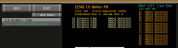 Now that's useful! I'm afraid the Ontos is a bit of a lame duck as the flechette rounds aren't represented in WinSPMBT. And no CS. |
