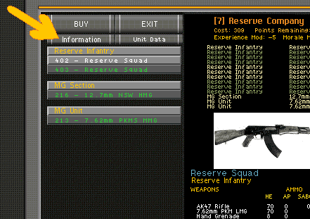 Click on the Information button. That's why it's there http://forum.shrapnelgames.com/attac...1&d=1613088150 Reserve Company* * Reserves are organized into two classes--Reserve I and Reserve II. The first category includes all men under age thirty-five who are not serving in the NVA, former company grade officers and NCOs under age thirty-five, and former field grade officers under age sixty. The second reserve category includes former company grade officers between ages thirty-five and sixty, former NCOs between ages thirty-five and fifty (in certain cases to age sixty), and all other men between ages thirty-five and fifty who have not served in the Nationale Volksarmee (NVA). The main reserve group is Reserve I, which reinforces combat units. Reserve II, which would probably only be activated in event of total mobilization, is charged with reinforcing units of the rear services. In 1987 the total size of the reserve was estimated to be 400,000. Reserve II Company* * Reserves are organized into two classes--Reserve I and Reserve II. The first category includes all men under age thirty-five who are not serving in the NVA, former company grade officers and NCOs under age thirty-five, and former field grade officers under age sixty. The second reserve category includes former company grade officers between ages thirty-five and sixty, former NCOs between ages thirty-five and fifty (in certain cases to age sixty), and all other men between ages thirty-five and fifty who have not served in the Nationale Volksarmee (NVA). The main reserve group is Reserve I, which reinforces combat units. Reserve II, which would probably only be activated in event of total mobilization, is charged with reinforcing units of the rear services. In 1987 the total size of the reserve was estimated to be 400,000. |