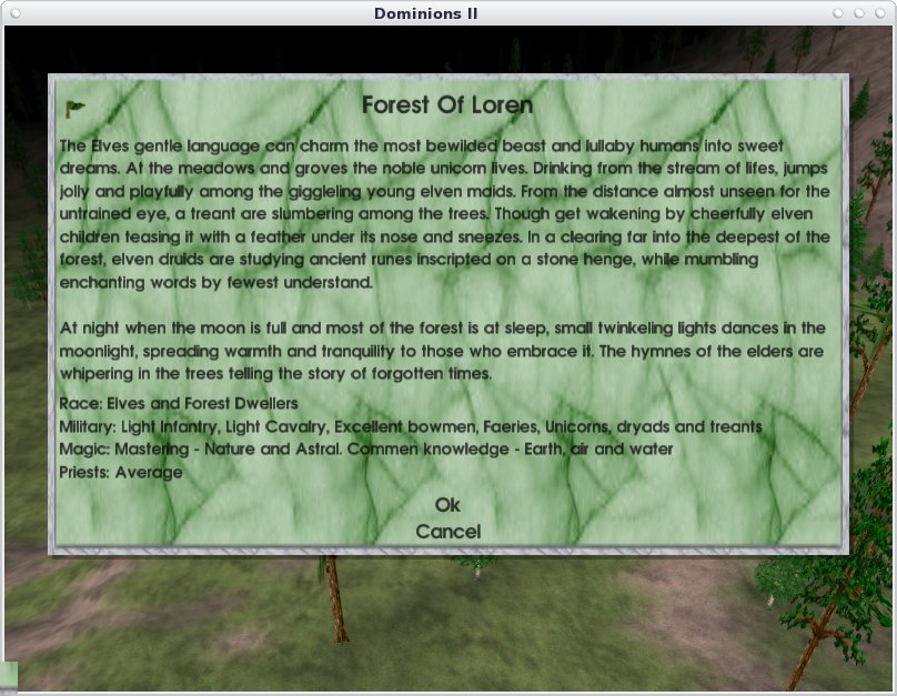 What you think of this description to the Wood Elves. I made it diffrent than the original dom2 description and choosed to describe the lives of the elves. The only problem is it to long