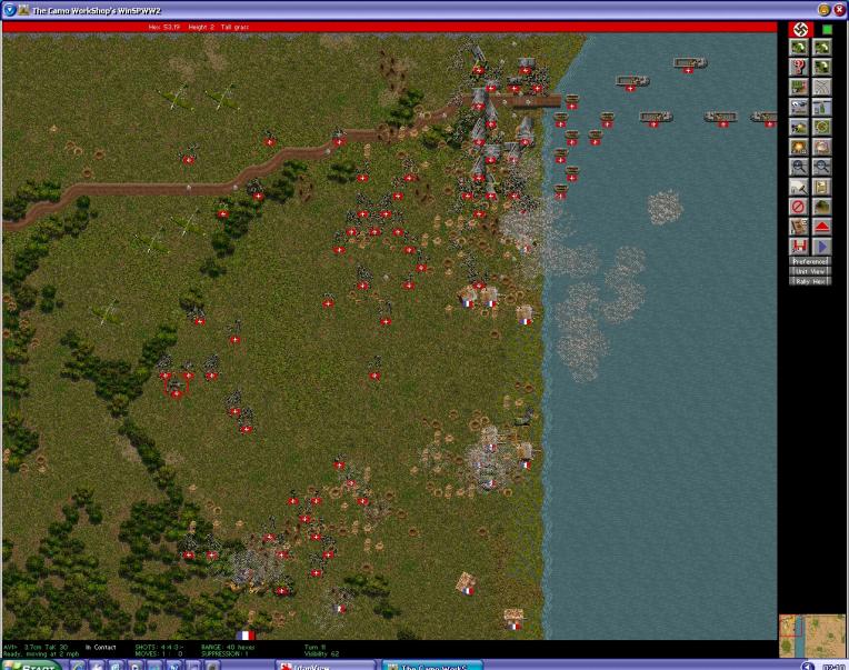 2 paths through mines cleared & hopeing paths through wire will be this turn. If not going to risk immob & run through with vehicles as expecting arty on crossing point. I hope the guys in rafts can make it to the bank & weather the storm before it hits.