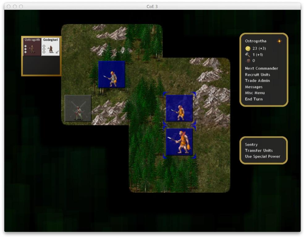 Here we are in the beautiful crystal tower by the sea. My name’s Ostrogotha, and I’ll be your Enchanter for the foreseeable future. As you can see there is a coal mine on the other side of the river. Coal mines are the least productive of all mines, producing 1 extra gold and 1 iron per turn. However, that’s a big help since the crystal tower only produces 2 gold and no iron.