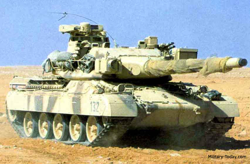 "During the production run many improvements were implemented. These included gun stabilization from 1971, and from 1972 replacing the original coaxial heavy machine gun by a dual purpose 20-millimeter (0.79 in) autocannon against light armour and helicopters, with the ability to depress to -8 degrees and elevate to 40 degrees."