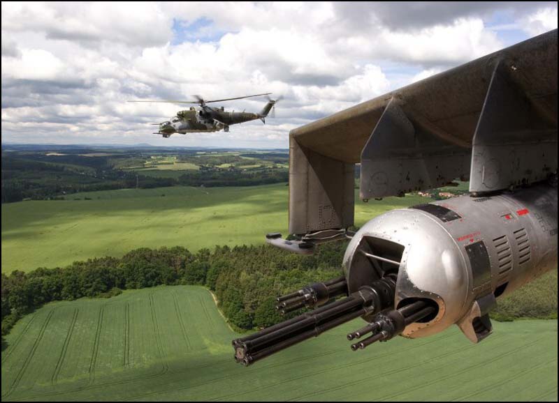 "Under the helicopter nose, there is a revolving turret with a four-barrel rotating 9A624 machine gune of 12.7 mm calibre with a supply of 1,470 cartridges."