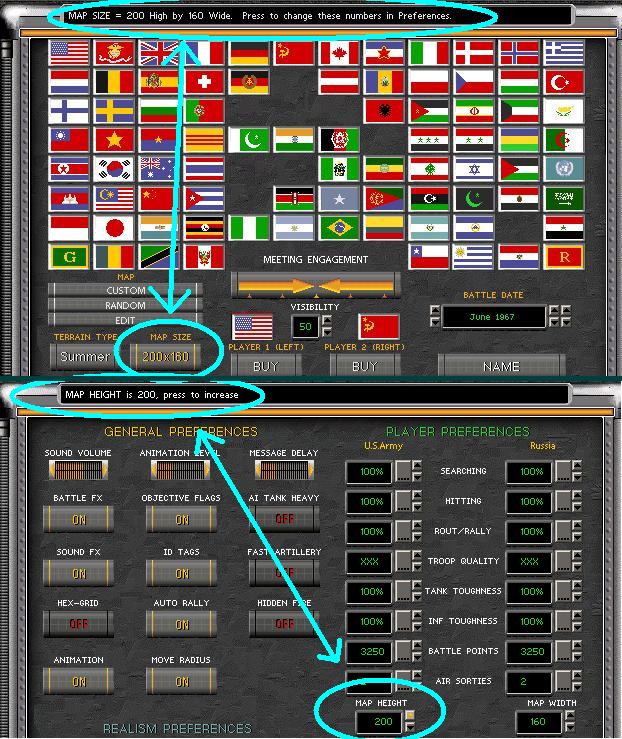 How do I change the map size in the editor? I'm pretty sure that you are supposed to push the "map size" button to change to say 10x10, 100x50, etc but when I do it takes me to the preferences screen instead.