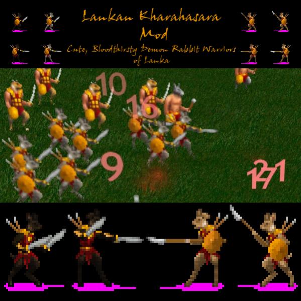 Anyway, without further ado, I present the BLOODTHIRSTY DEMON RABBIT WARRIORS of Lanka. Be afraid, dear fellow Dom3 players, be very afraid.