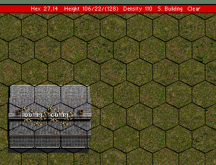 Multi hex buildings do not work past deploy stage, building 12,16 is the minimum size. Has squads in all exterior hexes.