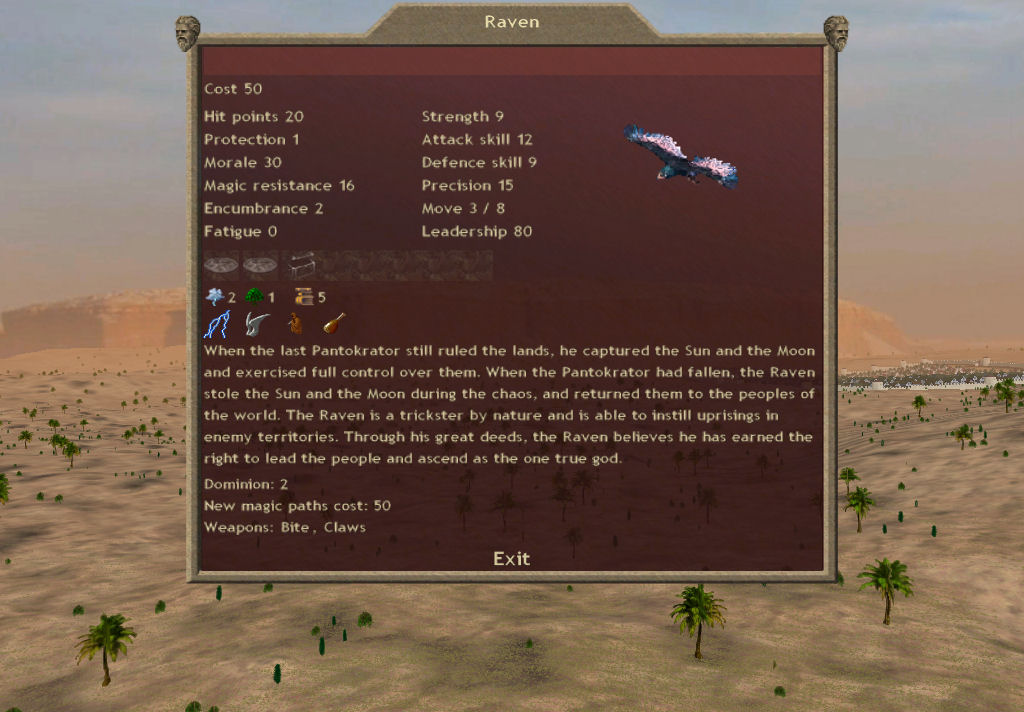(Graphics come from Age of Wonders and Civ3, Retouched and recolored a bit. Final release of the mod will have a version that uses existing dominions 3 graphics so people can choose.)