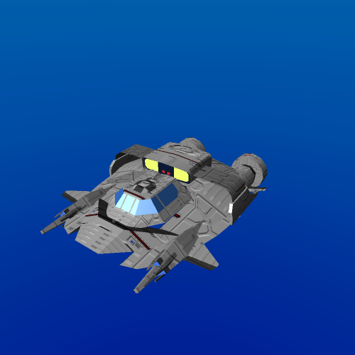 The one I made is 'exactly' the one you posted with the teal background color. I changed the teal to black and did a bit of 'tweaking' with the contrast, sharpness and gave it a tiny bit of shading. I also kind of cheated and added engine glow which I don't think the stock ships have or use.