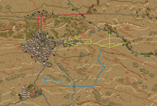 Turn 25: Village north of al-Hawl captured. Delta with K0 platoon marches to attack position of al-Hawl. Lima captures all objectives and pushes west towards river east of al-Hawl.