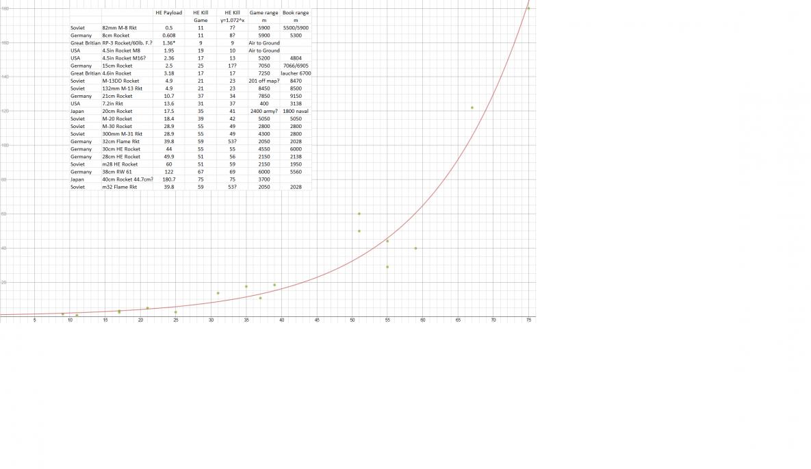 I compared the HE payload of rockets in Peter Chamberlains book Mortars and rockets and Steven Zalogas book Red army handbook against your values