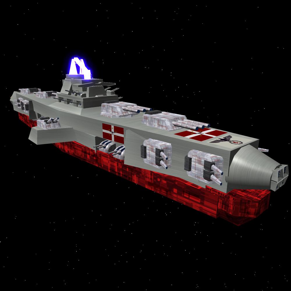 OR the ship rotates round its axis of movement. The main engines are mounted on the 'hub' of the ship as are your forward firing main weapons. Simplifies some of the problems certainly, if not solving all of them.