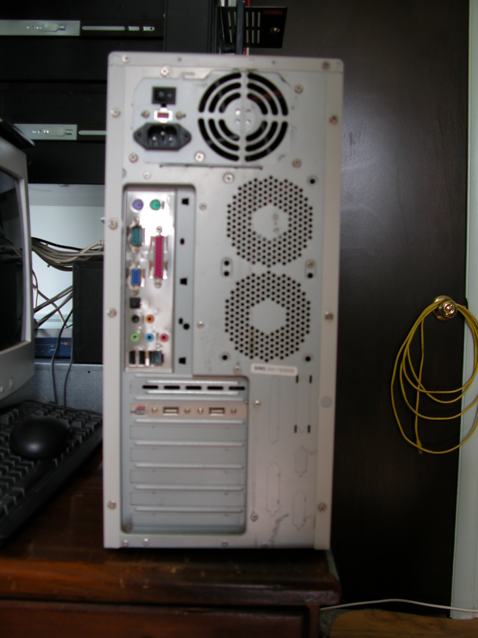I put a pair of 40gig drives in it, they were imaged spares and have less than an hour of use. So you are good to go on drives. The system itself probably has about 50 hours if that. This was a demo system, showed it to several clients and I ended up building 175 of them. It's kind of funny, when I ordered the cases, I did a bulk purchase. They came on palets, with cardboard shrink wrapped around the whole stack, no indivirual boxes. I got home one day and it was sitting in the driveway! I was worng on the ram, I had pulled it at some point in the past. I scrounged up a 256 meg stick of ddr 333 to get you going. Memory is like beer around here. If it isn't being used by someone, it walks off. You can pick up a pair of 512 ddr 400's for less than 70 bucks. You'll need a CD reader (writer would be nice, then you could ghost it to cd's. And a floppy reader. For what they cost, perhaps some Empire will spring for new ones and write it off to foreign aid.