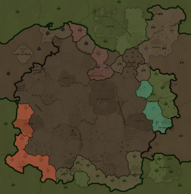 At last what is ours has become ours. The faces of our enemies when our men rose from the waters to reclaim the lost land was something of bewilderment. Rapidly we have been moving across the land to take the yet unclaimed and we shall continue to do so. We much desire the other four water provinces but they are held by other forces. We must balance the choices we make if we should choose to do this.