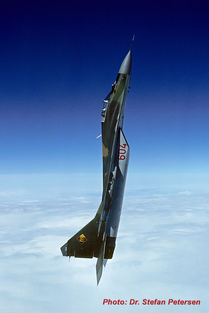 Though a potent Interceptor especially in a close in dog fight, it's main issue was it's lack of range and that it was a maintenance hog. But when "all was right with he world" it ranked among the best in the world. Most of these would fly with the Luftwaffe after reunification and continue to fly currently in two Fighter SQDs. of the Polish Air Force. The Luftwaffe would upgrade these to the MiG-28G variant that improved its abilities as an Interceptor and made it NATO compliant. What's important here are these, again taken by Steve. First up the DDR years enjoy...