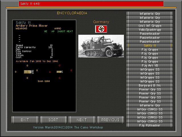 Here is a screenshot of the SdKfz 11 - Icon 1169. Note the picture.
