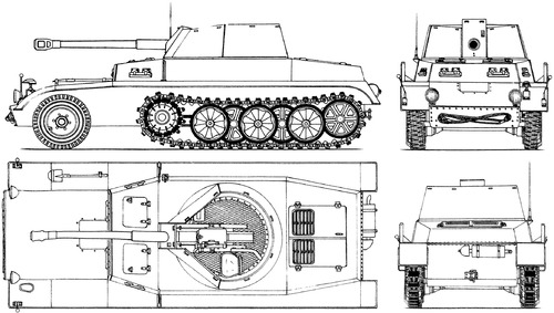 Pz.Sfl Ic (5cm Pak 38 auf Pz.Kpfw.II Sonderfahrgestell 901), there's no hard dimensions on it; the cannon was a modified Pak 38 with the breech and mount adapted from a 5 cm KWK gun.