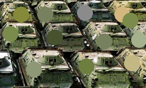 And this is what you get when the top right colour sample example is blended with the tan over the green at 20% density and 20% opacity