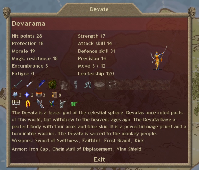 While Devarama is away fighting for the honour of Kailasa I will organize my armies: prepare an army to take down Bogus + friends and finally kill that Vampire Count from several months ago. This and outfit my commanders with expensive and powerful artifacts.
