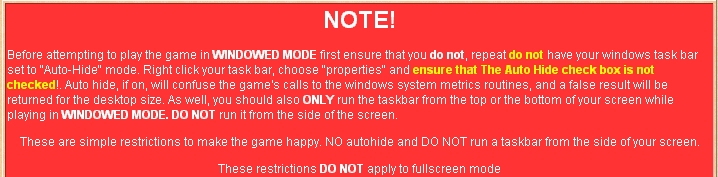 I run the task bar on the right hand side of the screen instead of the bottom. I you do this and try and run the CD version in windowed mode, it stretches it in weird way and locks the game. You then have to reboot for it to open again.
