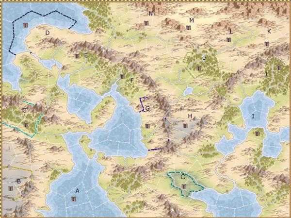 8.c Sorry I suck on graphics editing. If you squint you should be able to make out the positions A-P. Two of the nations have around 6 territories, and 5 others have 2-5.