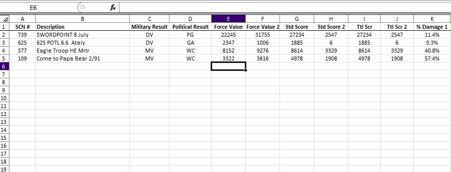 Finally, after playing several scenarios whilst in the process of authoring a few, I turned my attention to the Battle Calculation Sheet to develop a tool whereby players may account for political consequences, in particular where dominant forces engage non-peer adversaries.