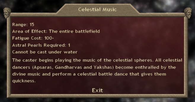* New spells (most of them national): Summon Spectral Infantry, Tempering the Will, Stand Firm, Celestial Chastisement, End of Culture, End of Weakness, Arcane Bolt, Conflagration, Hydrophobia, Inner Furnace, Celestial Music.