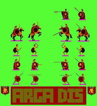 Added to the 4 hoplite units we now have mountain dwelling Argan myrmidons called 'blackshields' - they have less armour than Arco myrms and lack the shield bash of Argan hoplites but are still far more armoured than all the other argans and have a mapmove of two due to their endurance and constant training.