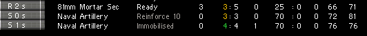 US Naval Artillery units S0 and S1 are listed as Immobilized landing barges and can't be used for indirect fire.