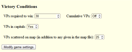 - when I open my turn in the Dom3 client, the Game settings screen tells me that the VP condition is : 25VP.