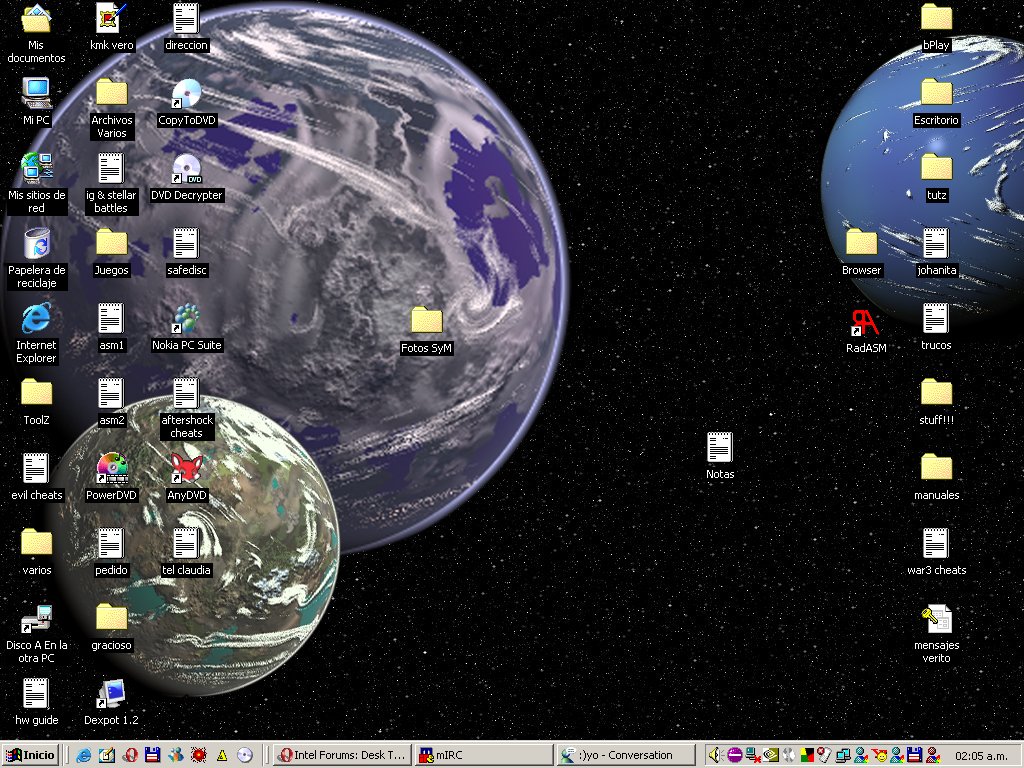 Here's my desktop. Nothing special, the star background is my own custom starfield for Space Empires.