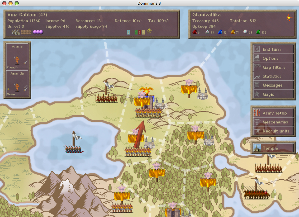 Arana is taking what troops I have north, to exchange a few with Ananda. Then he will start a campaign against the remaining independant provinces.