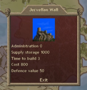 The Jervellan Wall has great siege supply, but not much defence, so unless you have a very tough army inside the walls will fall rather quickly. The idea (I'm guessing) is that it takes a lot of manpower to hold, and therefore has a correspondingly high siege supply.