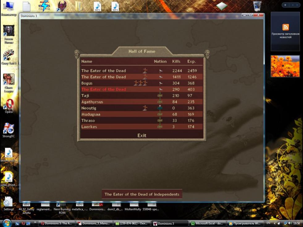 Then something else has happened: when the prophet Eater was killed - the same turn the Third Eater U997 has appeared in the same province... Well not third now since prophet is dead - but there are still two indie Eaters in the world, here's screenshot of hall of fame.