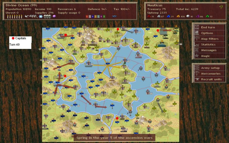 Sooo... I'm pretty sure this is victory for me. I have held five capitals (mine (Atlantis), Marignon's, Bogarus', C'tis' and Pythiums) for three entire turns (49, 50 and 51). By that I mean I have held all five capitals for the entirety of each of those turns. Those provinces haven't even been besieged or anything.