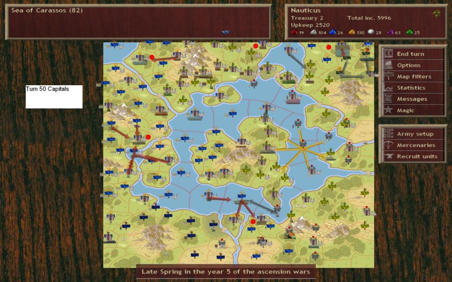 Sooo... I'm pretty sure this is victory for me. I have held five capitals (mine (Atlantis), Marignon's, Bogarus', C'tis' and Pythiums) for three entire turns (49, 50 and 51). By that I mean I have held all five capitals for the entirety of each of those turns. Those provinces haven't even been besieged or anything.