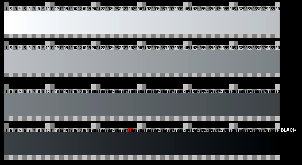 Somebody mentioned LCDs cannot display pure black, this may or may not be true I dont know but the gradient supplied displays fine on my laptop. All the colours are distinguishable apart from the first & the last (lightest darkest) which look the same as the one beside it. Also tried looking at a photo of a black car & there are lots of shades of black so detail is defned.