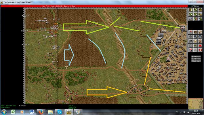 The southern sector has a simmilar attack plan. First the small village has to be taken. From there untis will then advance into the city and support the central attack.