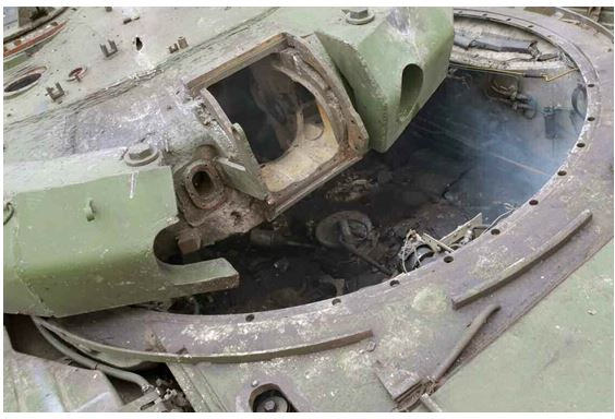 Damaged MERKAVA showing internal configuration of "special" armor.
