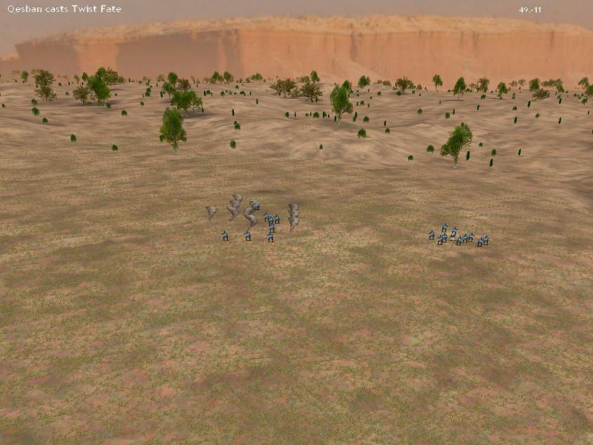 (2) Attacker army given a squad of Air Elementals at rear of attacker's side of the field. Set to "Attack Rear".