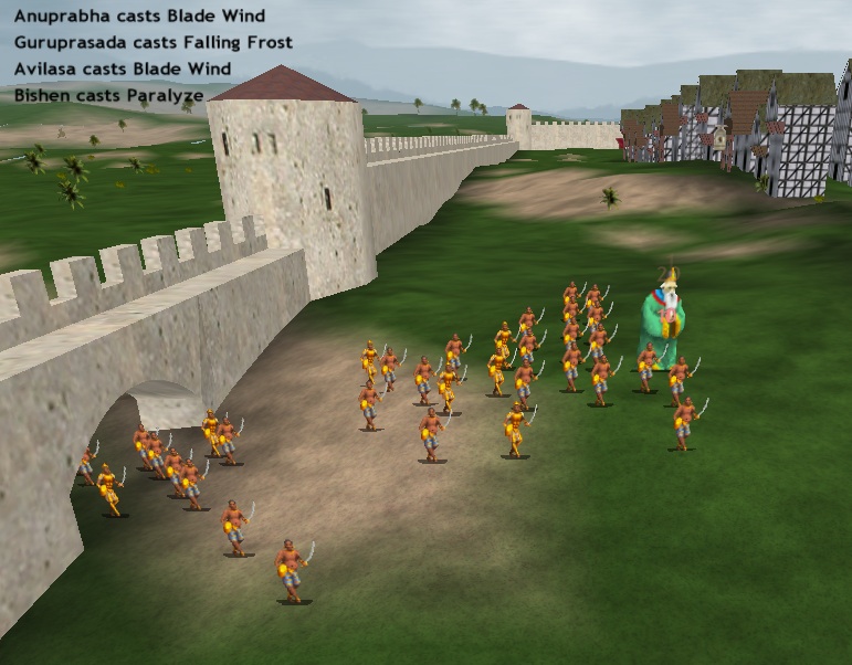 Balastha is almost fully equipped for battle. Next turn he will lead a contingent down to the front. I am tasking my researchers on finding an enchantment that will protect my troops from missiles. I believe Balastha would be able to cast such a spell, should it become available.