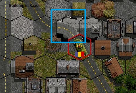 In an effort to resupply units in the north, near the artillery park, I encountered a building on a road. Meaning, when attempting to drive a truck along the road, a warning message asking if I wanted to enter a building hex appeared. Upon closer inspection, I identified an apparent map error at 83,24.